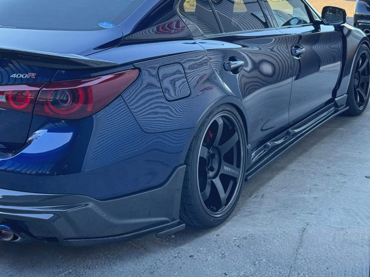 M3 由来のワイドデザインを V37 に最適化し、「スムージング無し・貼り付け感ゼロ」の自然なラインを追求したフェンダーです。