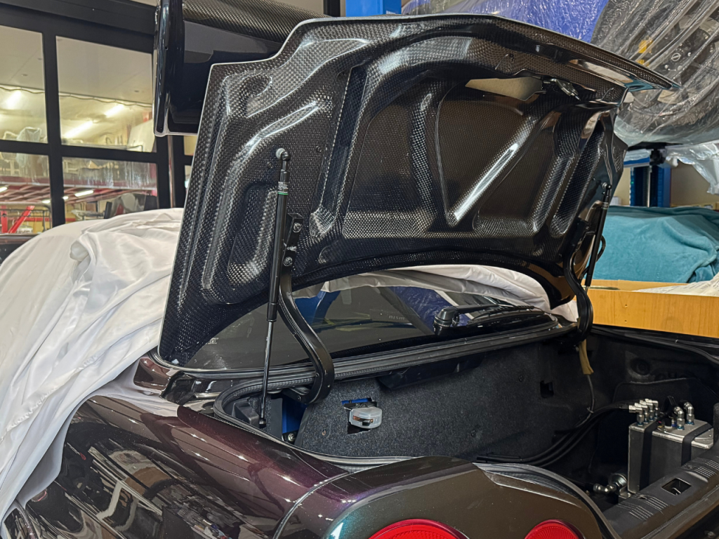 高品質12Kカーボンを採用したプレミアムトランク裏面パネル